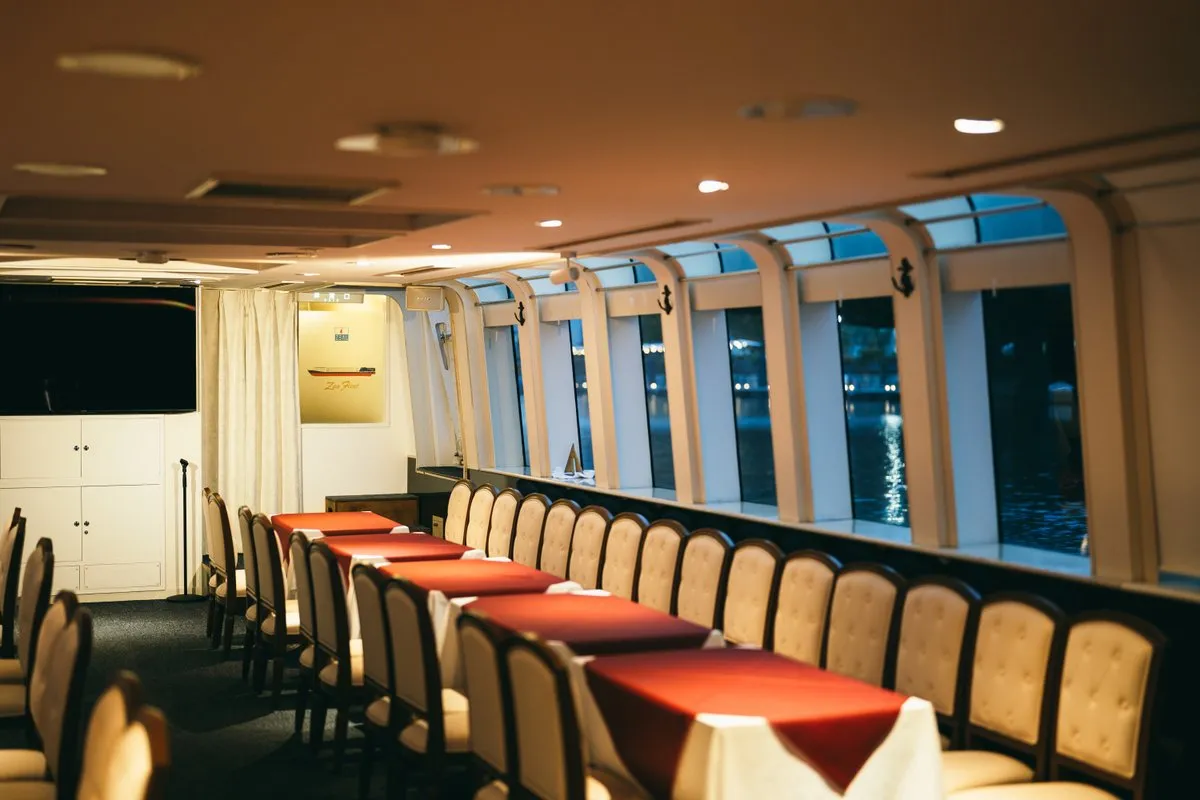 「天王洲ヤマツピア」を離れ、船はゆっくりと東京湾へ。レインボーブリッジの光をくぐり、日の出桟橋から竹芝、浜離宮へ──やがて隅田川に入り、勝鬨橋、永代橋、清洲橋へと航路を進めていきます。デッキに立てば、風の匂いとともに広がる東京の夜景。船内ではDJのプレイが始まり、淡く揺れる光に包まれながら、音楽に身を委ねる心地よい時間が流れていきます。