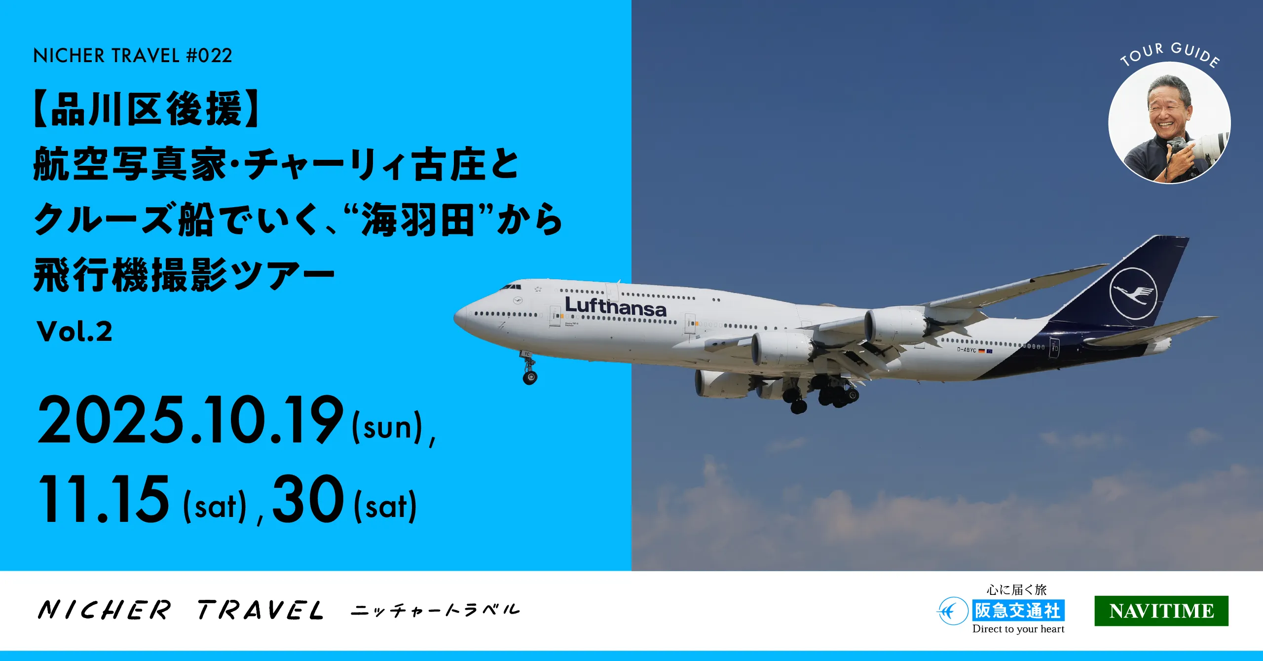 みなさん、こんにちは! お待たせしました……いや、お待たせしすぎたかもしれません。今回ご紹介するのは、昨年大好評のうちに幕を閉じた「航空写真家・チャーリィ古庄とクルーズ船でいく、“海羽田”から飛行機撮影ツアー」の第2弾。前回は全3回が即完売&キャンセル待ちに。みなさんの熱烈なリクエストにお応えして、あの“伝説のツアー”が再び帰ってきます。