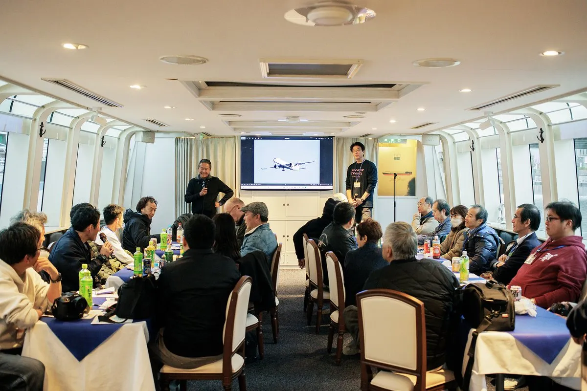 舞台は、羽田空港の沖合。クルーズ船に乗り込み、空と海を背景に飛び交うジェット機を間近で撮影する——そんな、飛行機好きにはたまらない、ちょっと欲張りな体験ツアーです。ナビゲーターを務めるのは、航空写真家・航空ジャーナリストとして活躍するチャーリィ古庄さん。パイロットや機内サービス、広報など、航空業界のあらゆる現場を経て写真家として活躍する、まさに唯一無二の存在です。