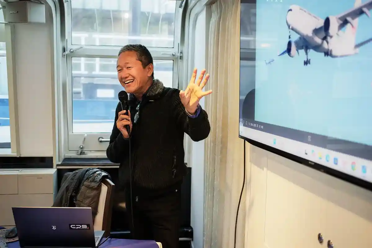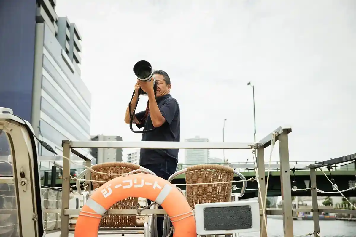 舞台は、羽田空港の沖合。クルーズ船に乗り込み、空と海を背景に飛び交うジェット機を間近で撮影する——そんな、飛行機好きにはたまらない、ちょっと欲張りな体験ツアーです。ナビゲーターを務めるのは、航空写真家・航空ジャーナリストとして活躍するチャーリィ古庄さん。パイロットや機内サービス、広報など、航空業界のあらゆる現場を経て写真家として活躍する、まさに唯一無二の存在です。